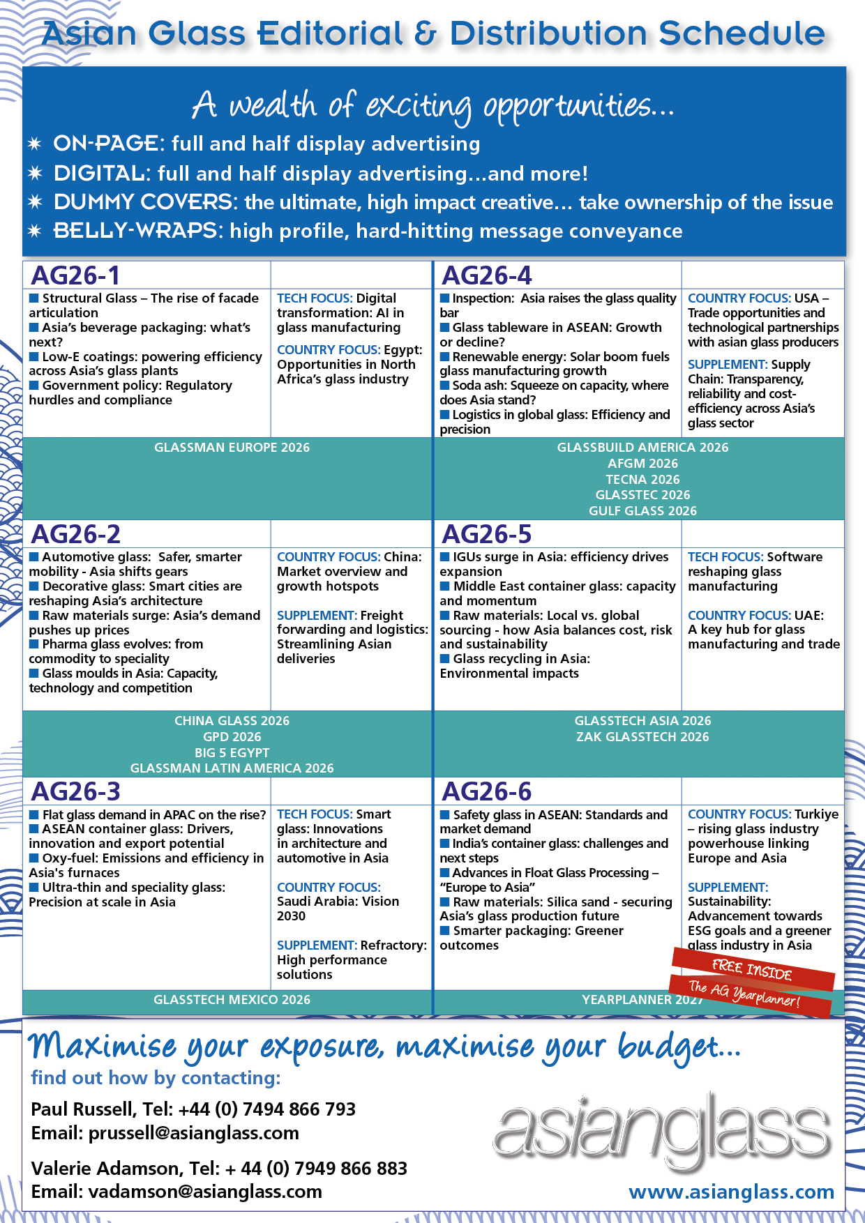 Download our editorial features schedule today.